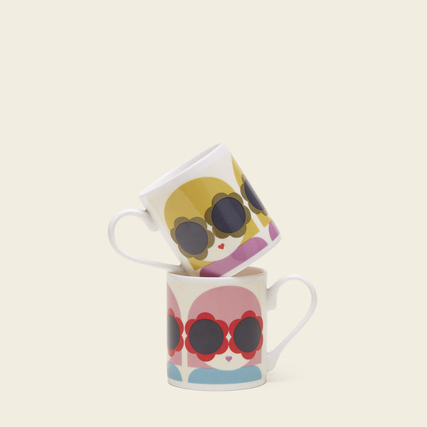 Mug Set of 2 in Folk Girl Ochre/Pink