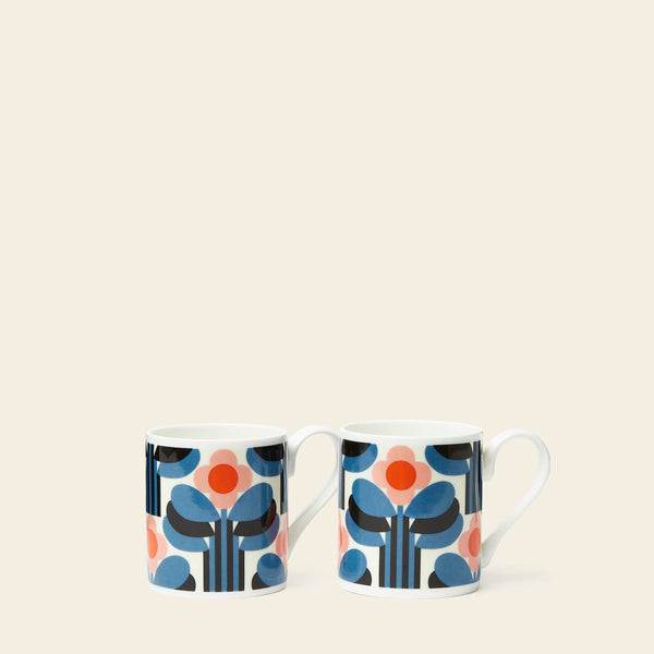 Product Image of two Orla Kiely orange and blue Art Deco MugsProduct Image of two Orla Kiely orange and blue Art Deco Mugs